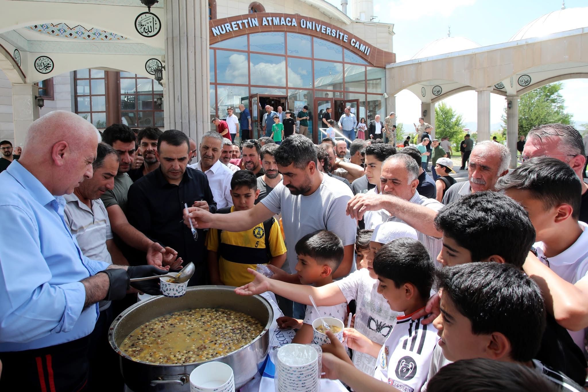 Rektör Prof. Dr. İlhami Gülçin, Cuma namazı çıkışında cami avlusunda bir araya geldiği akademik-idari personel, öğrenciler ve vatandaşlara aşure ikramında bulundu.