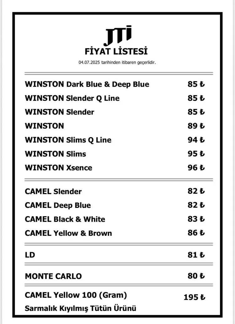 Temmuz 2025’te sigaraya ÖTV kaynaklı 5 TL zam yapıldı. JTİ grubundaki en ucuz sigara 80 TL olurken, en pahalı paket fiyatı 96 TL’ye yükseldi.