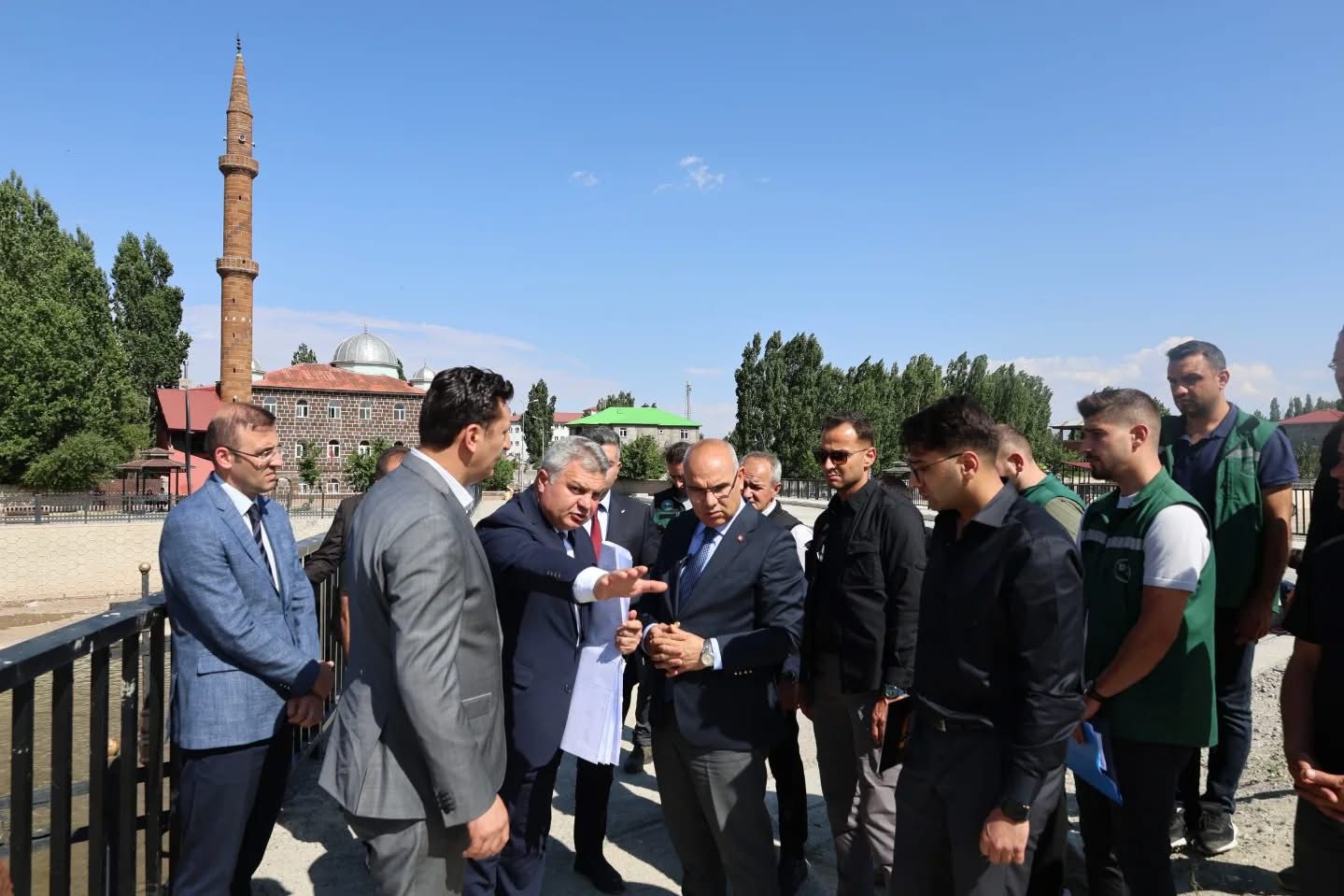 Ağrı Valisi Mustafa Koç, Fırat Mahallesi ile Fevzi Çakmak Mahallesi’ni birbirine bağlayacak olan ve Devlet Su İşleri (DSİ) tarafından inşa edilen Taşlı Deresi Köprüsü’nde incelemelerde bulundu. Yapımı devam eden köprüde teknik ekiplerle birlikte sahada yapılan denetimlerde, projenin ilerleyişi ve tamamlanma süreci hakkında kapsamlı değerlendirmelerde bulunuldu.